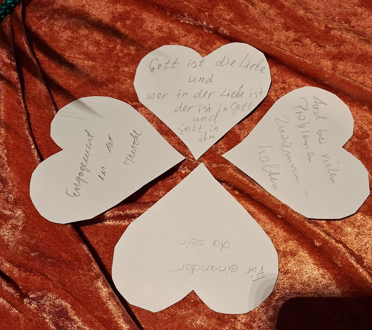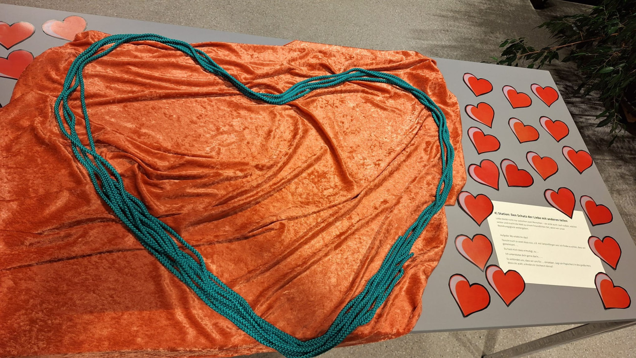 Unter diesem Motto feierten wir auch in diesem Jahr wieder unseren ökumenischen Segnungsgottesdienst für Paare, diesmal am Vorabend des Valentinstages (Freitag, 13. Februar). Im Mittelpunkt standen Jesu Gleichnisse vom Kaufmann und der Perle und vom Schatz im Acker aus dem Matthäus-Evangelium. Pastoralassistent Ulli Göbel (Kath. Ehe- und Familienseelsorge) und Pfarrerin Gerhild Ehrmann leiteten den Segnungsgottesdienst mit 7 Stationen und anschließendem Sektempfang im Gemeindesaal. Angelika Eirich gestaltete die Segensfeier mit einfühlsamer Musik (Klavier und Klangschalen). Thematisch ging es darum, die Schätze einer Paarbeziehung zu heben und das Wertvolle darin zu entdecken.